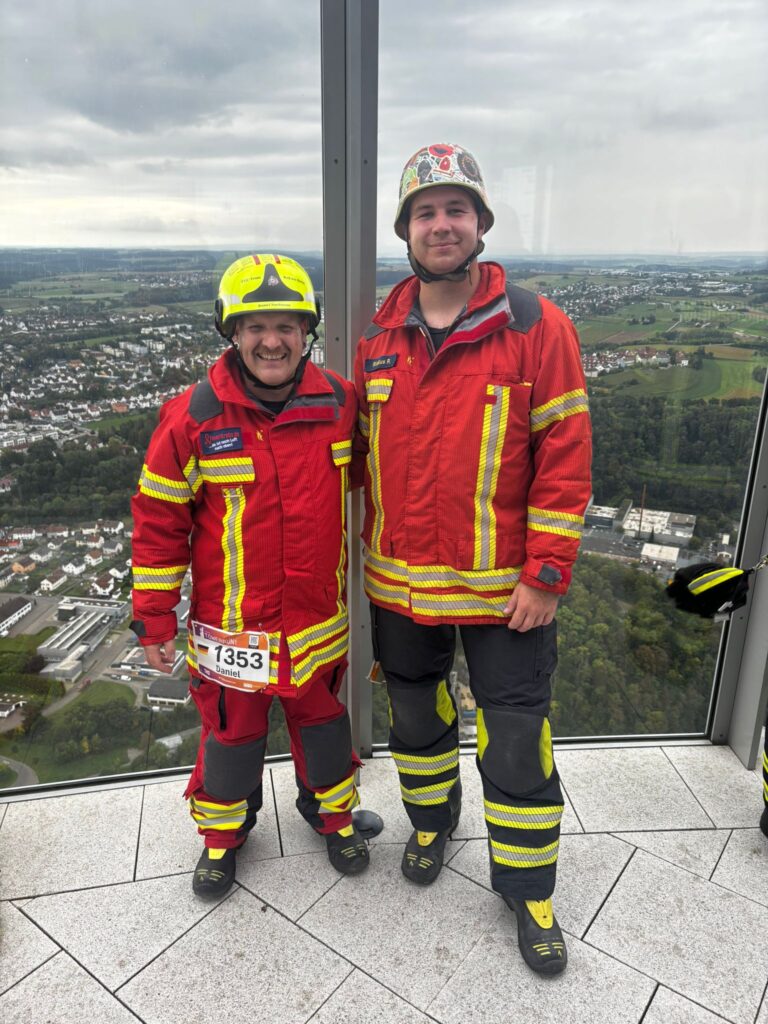 Am Sonntag, den 21.September nahmen zwei Einsatzkräfte der Feuerwehr Weil in Rottweil schon zum 6. Mal am höchsten Treppen-Lauf Europas teil. Sie sind Teil der Feuerwehr-Sportgruppe; die Mitglieder der Gruppe sehen Feuerwehr auch als sportliche Herausforderung, trainieren regelmäßig verschiedene Disziplinen wie Treppenlaufen mit Atemschutzgeräten oder das Tragen von Übungspuppen auf Zeit. Dies dient schlussendlich auch der Vorbereitung auf die Herausforderungen im Einsatz. Daniel Nordmann & Raffael Rimkus liefen so am 21. September 2025 in Rottweil am TK-Towerrun mit. Folgendes erreichten sie dabei: 1390 Stufen und 232 Höhenmeter haben sie in 26.20 Minuten bezwungen. Sie haben bei ihrer 6. Teilnahme wieder bewiesen, dass kein Aufzug, keine Abkürzung und keine Ausrede zählen! Nur der Wille-Teamgeist ist gefragt. Ganz nach dem Motto-_Fit for Firefighting! Mit Platz 63 in der Männerwertung und Platz 74 gesamt in der Feuerwehr-Kategorie (ohne Atemschutz) haben sie sich Schritt für Schritt nach oben gekämpft. Oben erwartete sie eine Belohnung in Form eines unvergleichbaren Blickes über den Schwarzwald von der höchsten Aussichtsplattform Deutschlands. Laut beiden: Es war eine körperliche Herausforderung, doch es lohnt sich immer wieder.