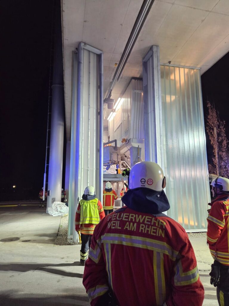 Die Feuerwehr Weil am Rhein Abt. Stadt wurde am Samstag, den 17. Januar 2026 zu einem gemeldeten Brand im Blockheizkraftwerk an der Römerstraße alarmiert. Vor Ort bestätigte sich die Meldung. Hier hatten die Säcke in denen sich die Asche aus dem Kraftwerk gelagert wird, Feuer gefangen. Da mehr Atemschutzgeräteträger benötigt wurden, wurde zur Unterstützung an der Einsatzstelle ein Löschfahrzeug der Abteilung Haltingen nachgefordert. Brandursächlich war hierbei vermutlich unsachgemäß gelagerte, heiße Asche, welche sich oberhalb von gelagerten Holzdielen befand. Es waren dieses ca. 1000 Kilogramm Asche. Nach dem Löschen des Brandes wurde damit begonnen, die Asche und die Säcke aus dem Gebäude zu transportieren. Dieses erforderte einen höheren Personaleinsatz da die Einsatzkräfte dafür Atemschutz tragen mussten und da größere Mengen an Asche zu transportieren waren. Das Blockheizkraftwerk wurde vom Netz genommen. Die Sachschadenshöhe konnte noch nicht ermittelt werden. Diese wird durch die Polizei noch ermittelt. Im Einsatz waren ca. 25 Einsatzkräfte mit 7 Fahrzeugen, der Rettungsdienst und die Polizei. Einsatzende war gegen 2:00 Uhr morgens. Fotos und Text Feuerwehr Weil am Rhein/ Karl-Heinz Rümmele