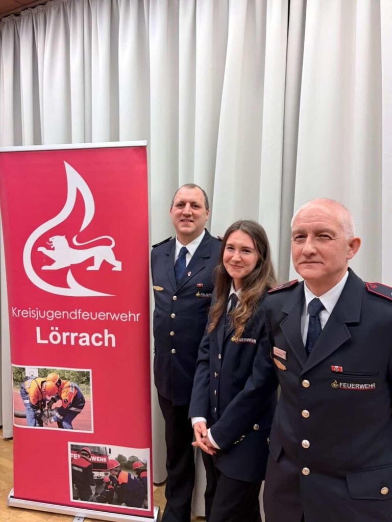 Im Todtnauer Pfarrsaal im Oberen Wiesental fand am 9. März 2026 die Jahreshauptversammlung der Kreisjugendfeuerwehr aus dem Landkreis Lörrach statt. Hierzu waren Vertreterinnen und Vertreter der Jugendfeuerwehren des Landkreises Lörrach und auch sonstige Gäste eingeladen. Neben dem Rückblick aufs vergangene Jahr stand vor allem ein Führungswechsel der bisherigen Kreisjugendfeuerwehrwarte an. Todtnaus Bürgermeister Oliver Fiedel begrüßte alle aufs herzlichste und danach wurde eine positive Bilanz des vergangenen Jahres seitens der Kreisjugendfeuerwehr und den Jugendwehren gezogen. Dass die Jugendfeuerwehren im Kreis gut aufgestellt ist konnte man aus den Mitgliederzahlen erfahren. So hat sich der Mitgliederstand bei den Jugendfeuerwehren im Landkreis mit Kinderfeuerwehren auf 1000 Kinder und Jugendliche gesteigert. Ja hier kann man mit Gewissheit sagen, dass die Jugendfeuerwehren somit ein verlässlicher Anker in der lokalen Jugendarbeit und für die späteren Aktivmitglieder sind. Im Mittelpunkt des Abends stand die Neuwahl der Führungsspitze der Jugendfeuerwehren des Landkreises Lörrach. Mit überzeugender Mehrheit wurden hier Nadine Dercho von der Freiwilligen Feuerwehr Bad-Bellingen zur neuen Kreisjugendwartin gewählt und tritt die Nachfolge von Markus Hasler an. Nadine Dercho bringt bereits Erfahrung aus der Jugendarbeit mit: Sie leitet seit fünf Jahren erfolgreich die Jugendfeuerwehr Bad-Bellingen und gilt hier als motivierte, tatkräftige Persönlichkeit, die die Jugendarbeit im Landkreis weiterentwickeln möchte. Sie war von 2011 bis 2019 in der Jugendfeuerwehr und ist seit 2019 in der aktiven Mannschaft. In ihrer kurzen Ansprache nach der Wahl betonte sie ihre Vorfreude auf die Aufgaben und ihren Willen, die Nachwuchsarbeit zu stärken. Unterstützt wird sie künftig von Andreas Ühlin (Freiwillige Feuerwehr Schopfheim, Abt. Stadt) der als neuer Stellvertreter und Nachfolger von Kai-Uwe Krieg gewählt wurde. Andreas Ühlin ist in verschiedenen Bereichen der Feuerwehr Schopfheim tätig: (Ausbilder und Schiedsrichter usw. und war in der Jugendfeuerwehr Schopfheim Stv. Jugendgruppenleiter und seit 2022 ist er Stv: Jugendwart. Beide Neugewählten bedankten sich fürs Vertrauen und betonten, dass an erster Stelle der Teamgedanke stehe, und sie wollen auf dem Bewährten aufbauen. Hierzu ohne die Weiterbildung aus dem Blick zu verlieren. Ihnen zur Seite steht noch als Stellvertreter Matthias Braun von der Feuerwehr Wembach wo dieser stellvertretender Kommandant seit 2023 ist. Matthias ist ebenso Mitglied in der Feuerwehr Fröhnd und 2016 hat er das Fachgebiet Wettbewerbe kommissarisch übernommen. Ein besonderer Moment der Versammlung war der Dank an die bisherigen Kreisjugendfeuerwehrwarte Markus Hasler und Kai-Uwe Krieg. Diese wurden für ihre langjährigen Einsätze gewürdigt. Die Versammlung sprach beiden ihren großen Dank aus-für die Zeit, die Energie und das Engagement, mit dem sie die Jugendarbeit im Landkreis begleitet und geprägt haben. Die Versammlung zeigte deutlich, dass die Kreisjugendfeuerwehr Lörrach mit neuem Führungsteam und einem großen Rückhalt in die kommenden fünf Jahre startet. Aufgaben wie die Ausbildung weiterer Jugendwarte in den Ortsfeuerwehren, die Durchführung von Wettbewerben sowie das im Sommer in Efringen-Kirchen anstehende Kreiszeltlager stehen auf der Agenda- und mit Nadine Dercho an der Spitze und ihren Stellvertretern ist man motiviert, dieses aktiv anzugehen. Die Kameradinnen und Kameraden der Freiwilligen Feuerwehr Bad- Bellingen haben Nadine Dercho ihre Unterstützung angesagt.