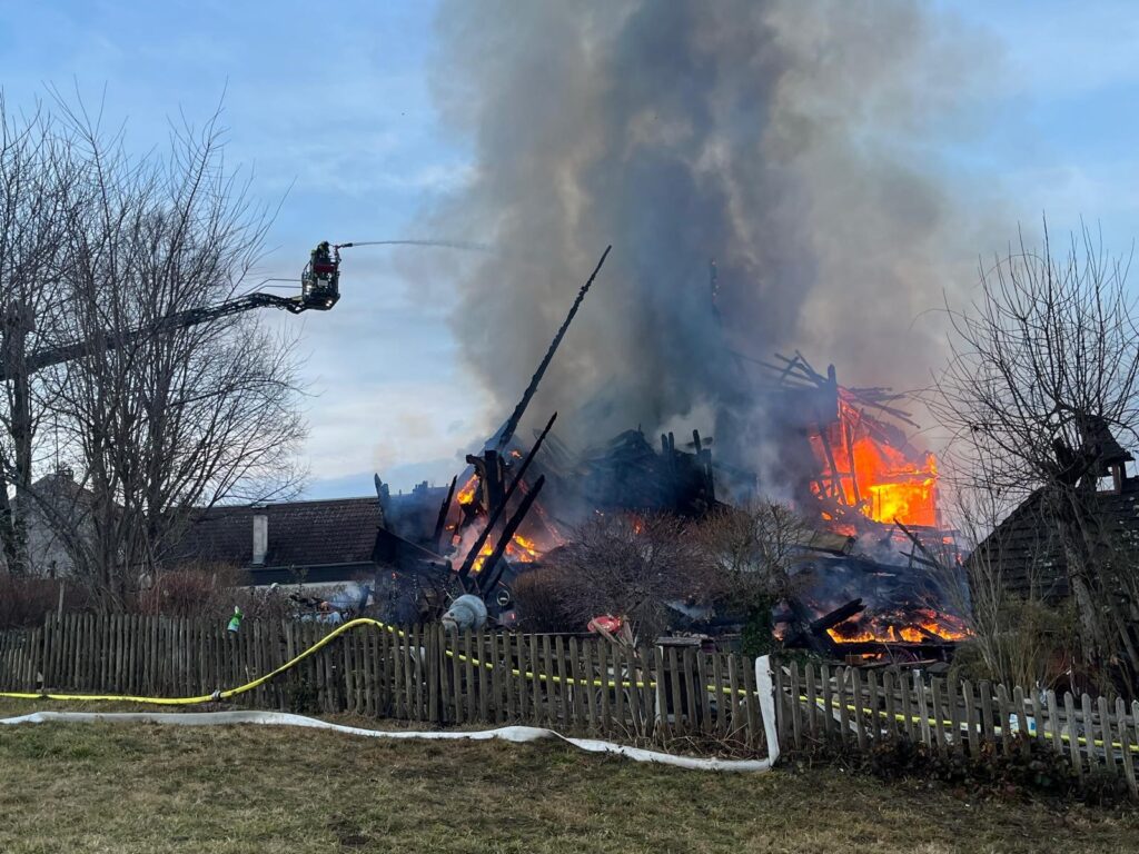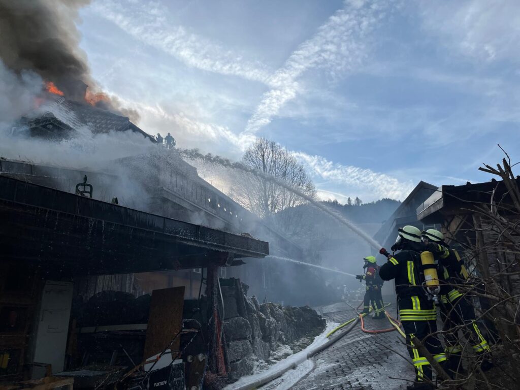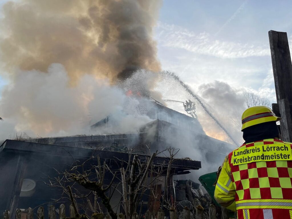 Der Schwarzwaldgasthof „Hirtenbrunnen“ im Fröhndner Ortsteil Hof im Landkreis Lörrach wurde am Mittwoch, dem 19. Februar 2025 ein Raub der Flammen. Gegen 15:36 Uhr wurde der Freiwilligen Feuerwehr Fröhnd ein Wohnungsbrand im Ortsteil Hof mitgeteilt. Wurde zu Beginn der Brand unter dem Stichwort Brand B3 angegeben so wurde dieser nach dem Eintreffen der ersten Rettungskräfte auf B4 erhöht und weitere Einsatzkräfte angefordert. Automatisch bei B4 Bränden wird der Kreisbrandmeister alarmiert. Das Haus war schon im Vollbrand und von weitem sah man eine Rauchsäule im Oberen Wiesental aufsteigen. Es wurden die Feuerwehren aus Todtnau, Aitern, Wembach, Zell, Schönau, Schopfheim, Feuerwehr Lörrach mit dem GW Atemschutz und der Multicopter Einheit sowie das THW alarmiert. Die Bürgerinnen und Bürger von Hof hatten bereits, die im Dreschschopf gelagerten Feuerwehrschläuche ausgerollt und angekuppelt sowie erste Löschversuche unternommen. Schon zu Beginn des Einsatzes war für die Einsatzkräfte klar, dass am Historischem Gasthaus welches aus viel Holz bestand nichts mehr zu retten war. Somit war auch ein Innenangriff nicht möglich gewesen. Die Brandbekämpfung erfolgte über die beiden Drehleitern der Feuerwehren Schönau und Zell. Glücklicher Weise waren beim Eintreffen der Einsatzkräfte keine Personen im Haus, weil gerade Ruhetag war. Die Einsatzleitung hatte der örtliche Kommandant der Freiwilligen Feuerwehr Fröhnd Jens Zimmermann welcher im Ortsteil Hof wohnte. Die Führungsgruppe Oberes Wiesental war als Führungsunterstützung vor Ort und wurde von Tobias Lehr dem Kommandanten der Feuerwehr Todtnau geleitet. Der Ersteintreffende Zugführer war der Kommandant der Feuerwehr Schönau Jürgen Bianchi. Die Wasserzufuhr musste auf Grund niedrigem Pegelstand ausgeweitet werden, hierzu wurde im Laufe des Einsatzes der SW 3000 der Feuerwehr Schopfheim nachalarmiert. Um einen Löschangriff zu erzielen, wurde im Laufe des Einsatzes mit Schaummittel benetzt. Gegen 23:00 Uhr konnten einige Feuerwehren wieder abrücken. Die Feuerwehren Fröhnd und Schönau sowie das THW Schopfheim blieben vor Ort. Das Gebäude wurde mittels Bagger abgerissen, um die Glutnester zu erreichen. Am Donnerstag, den 20.02.2025 um 5:00 Uhr konnte die Feuerwehr Schönau ebenfalls abrücken und die Feuerwehr Fröhnd übernahm die weitere Brandwache. Der Einsatz konnte am Freitag, den 21.02.2025 um 13:00 Uhr beendet werden. Somit waren vor Ort: die Feuerwehren Fröhnd, Schönau, Todtnau, Aitern, Wembach, Zell, Schopfheim und Lörrach, Kreisbrandmeister Uwe Häubner, das THW aus Schopfheim mit 26 Einsatzkräften und das THW Freiburg mit 5 Rettungskräften, der Rettungsdienst sowie die Polizei. Seitens der Ermittlungsarbeiten der Polizei gibt es bis zum heutigen Zeitpunkt keine neuen Erkenntnisse zum Brand.