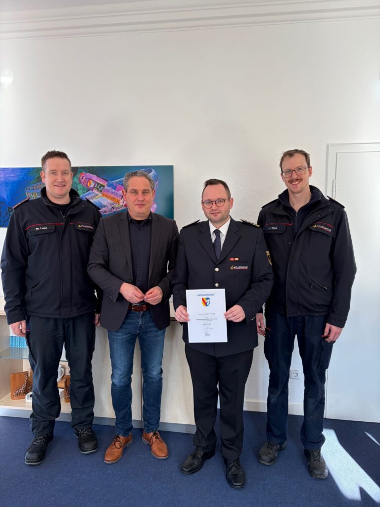 Der Schopfheimer Gesamtkommandant Steffen Hofmann wurde vor einiger Zeit zum dritten stellvertretenden Kreisbrandmeister des Landkreises Lörrach ernannt. Nun wurde er im Rathaus von Schopfheim im beisein der beiden hauptamtlichen Kameraden Thomas Lenz und Jan Staib von Bürgermeister Dirk Harscher zum Stadtbrandamtsrat befördert. Herzlichen Glückwunsch.